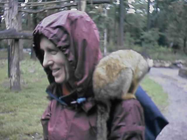It's a monkey! This picture was taken in the Apenheul, where people and monkeys can interact. It's a monkey zoo with some common areas where people and monkeys are both allowed. The monkeys stick their hands in your pockets looking for something to steal and eat. They will also ride around on your shoulder as shown above.